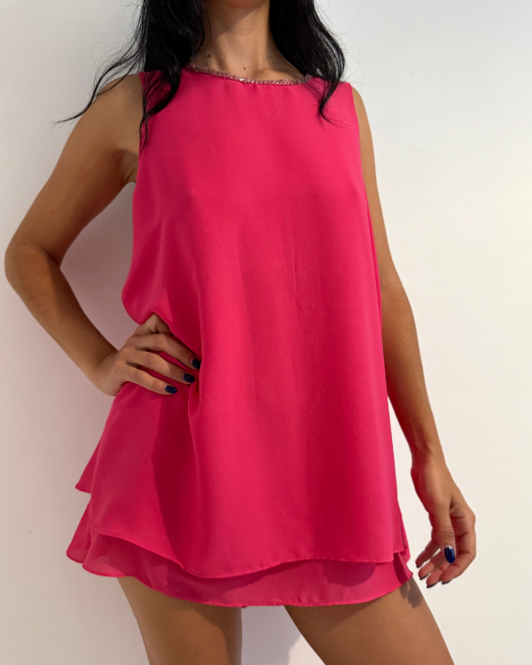 Talle único (va para S/M). Tiene un collar de piedritas en el cuello.
